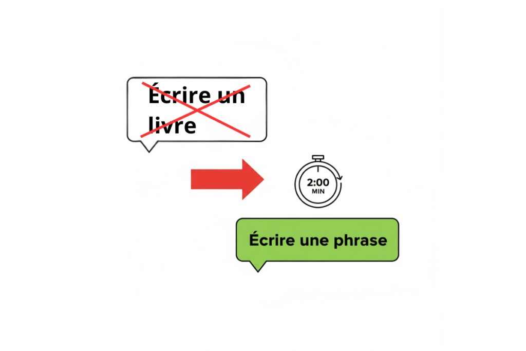 C’est ici que la règle devient vraiment puissante. Pour les gros projets, ceux qui nous paralysent, l’objectif est de commencer la tâche en moins de 2 minutes. La clé n’est pas de terminer le projet, mais de le lancer.