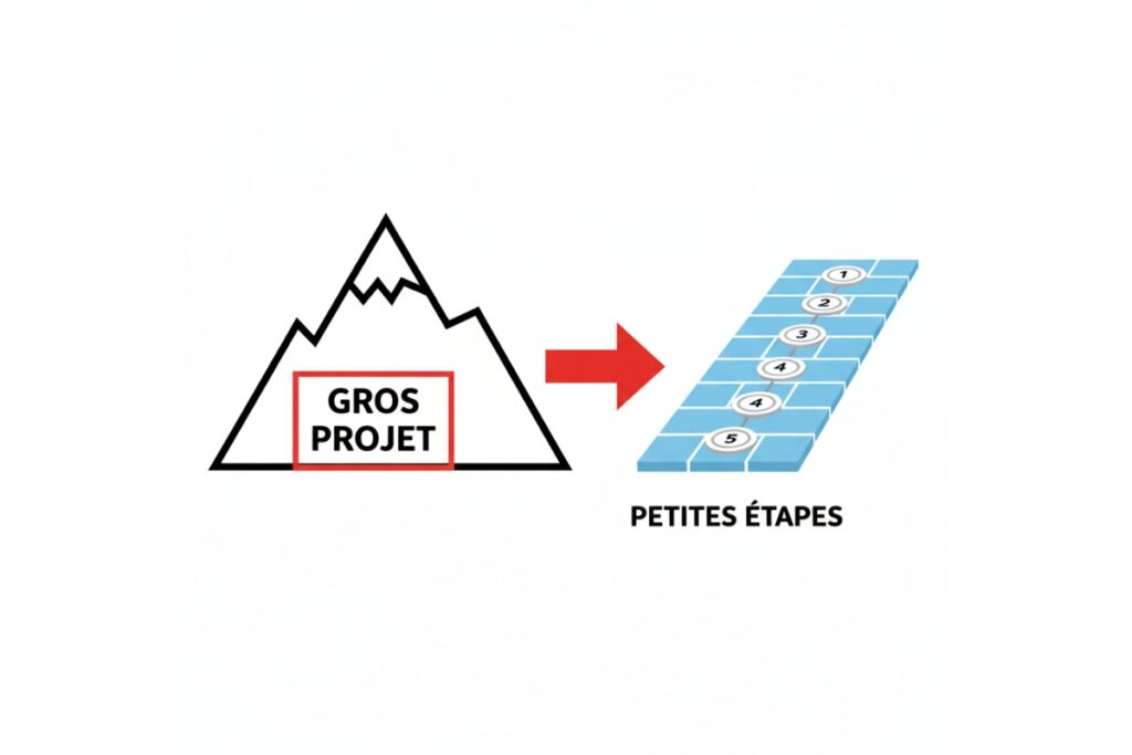 Décomposer les tâches, c’est traduire un objectif intimidant en un langage que ton cerveau comprend : une série d’actions simples, claires et réalisables. Tu ne vises plus le sommet de la montagne, tu te concentres juste sur le prochain pas.